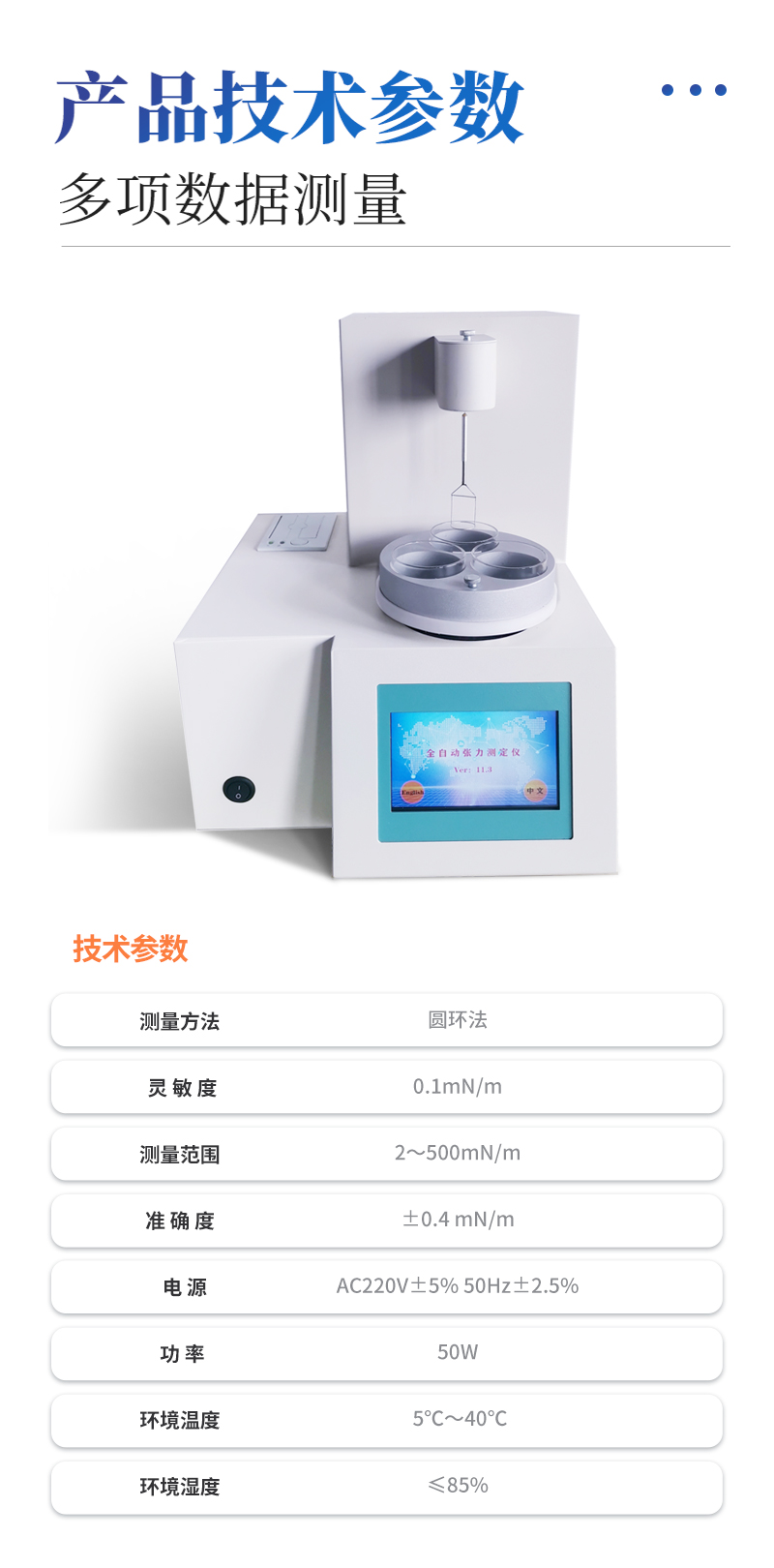 ★ 測量范圍:2~500mN/m