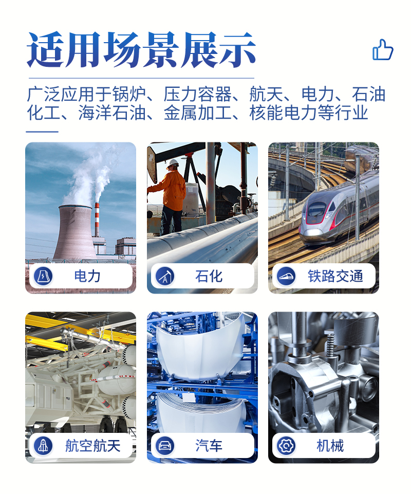 便攜式超聲波探傷儀能夠快速便捷、無損傷、準確地進行工件內部多種缺陷如裂紋、焊縫、氣孔、砂眼、夾雜、折疊等的檢測、定位、評估及診斷,廣泛應用于電力、石化、鍋爐壓力容器、鋼結構、航空航天、鐵路交通、汽車、機械等領域。它是檢測行業的重要儀器。