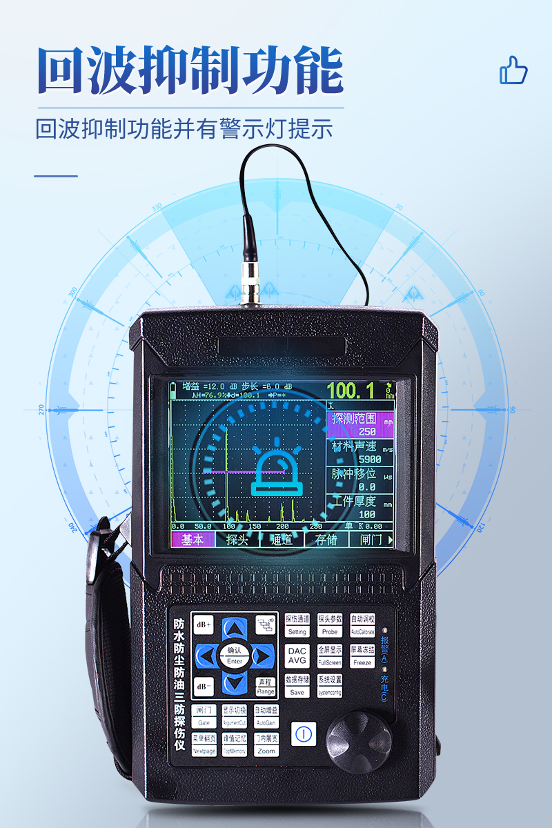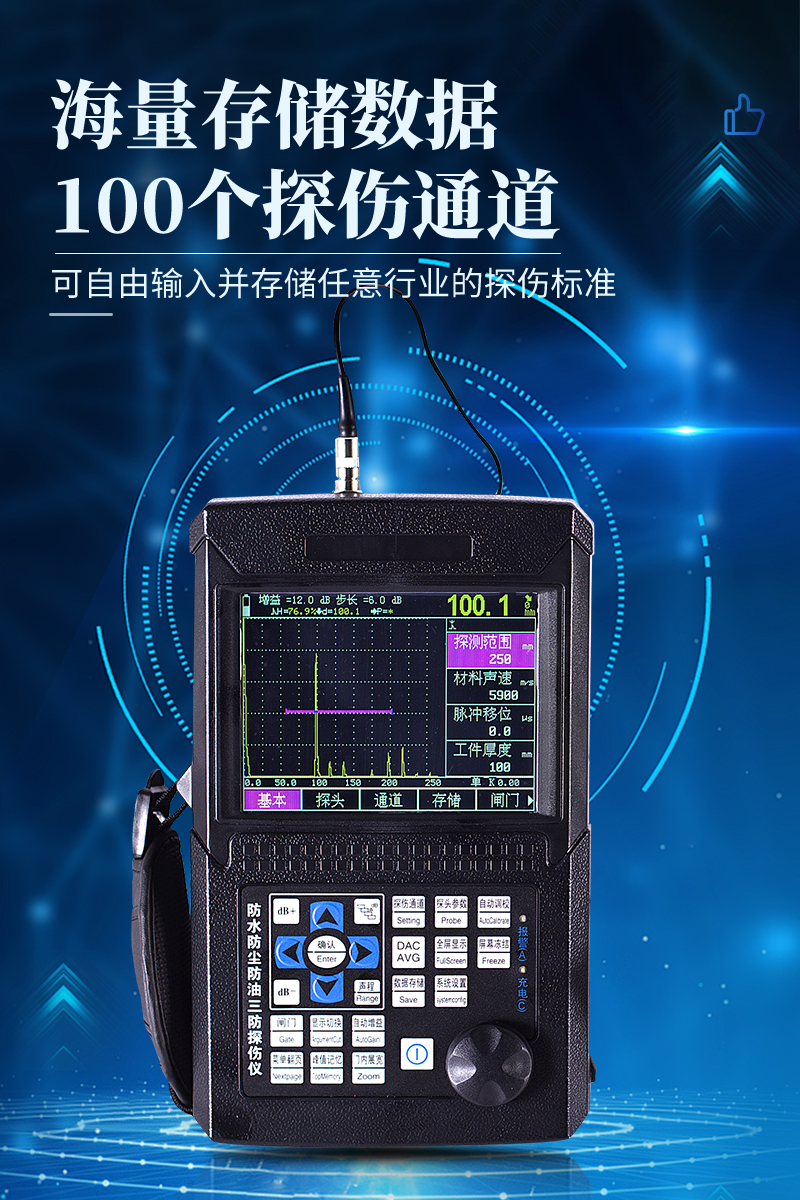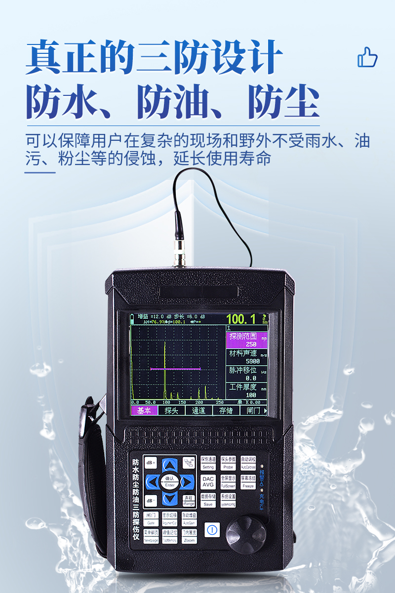 ● 真正的三防設計,可以保障用戶在復雜的現場和野外不受雨水、油污、粉塵等的侵蝕,讓探傷儀的使用壽命大大延長